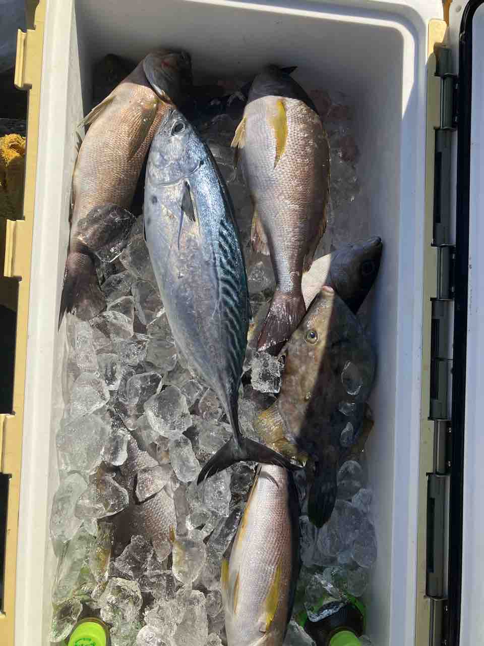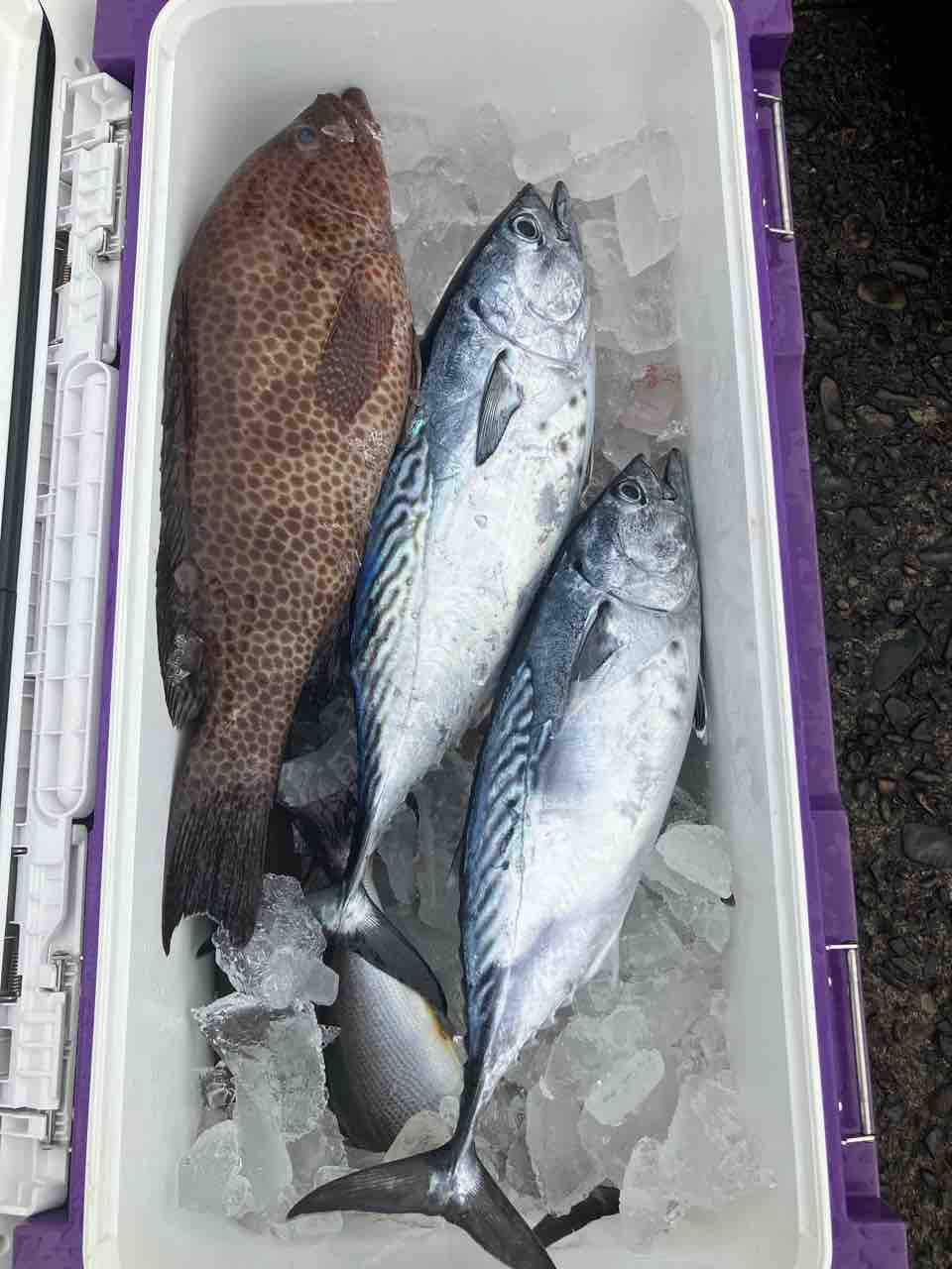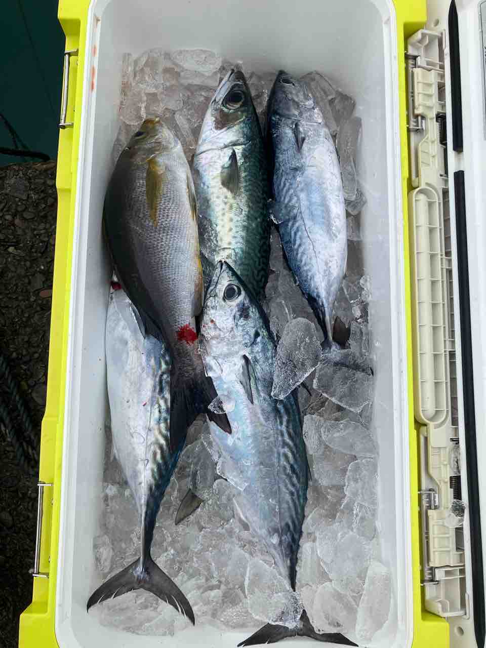 今日は生憎の雨でしたが、波もなく出船出来ました。大サバ、モンズマ、イサギなどを釣ってました^_^