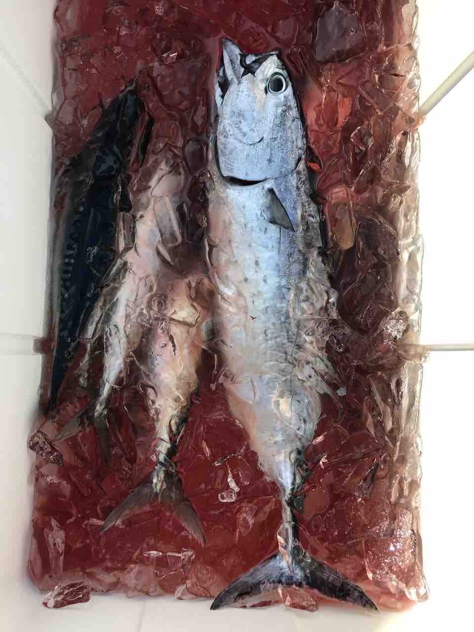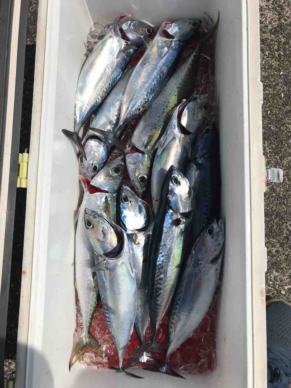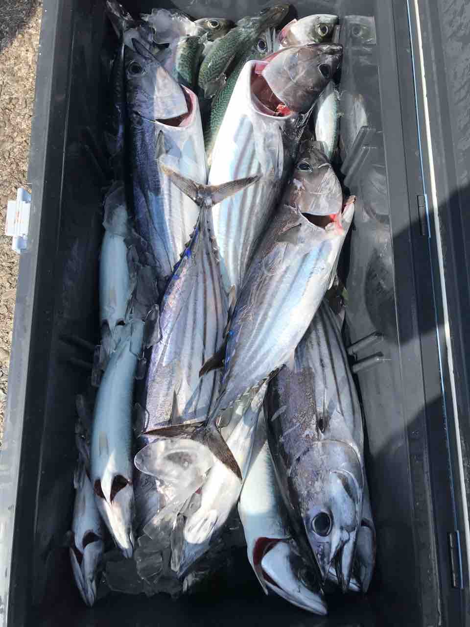 2021年09月20日 9月20日 久々の投稿です。8月はほぼ出てない状況でした(T . T)9月に入りポツポツ出船できるようになりました。前日の台風までの釣果です。掛けつりでは、ムロアジ、サバが多いですがそんな中でも近場でカツオが釣れてますよ^_^またジギングでは4キロオーバーのカンパチキハダを常連様が釣ってました^_^いい感じですよ‼︎釣果写真