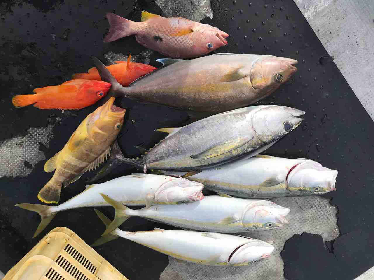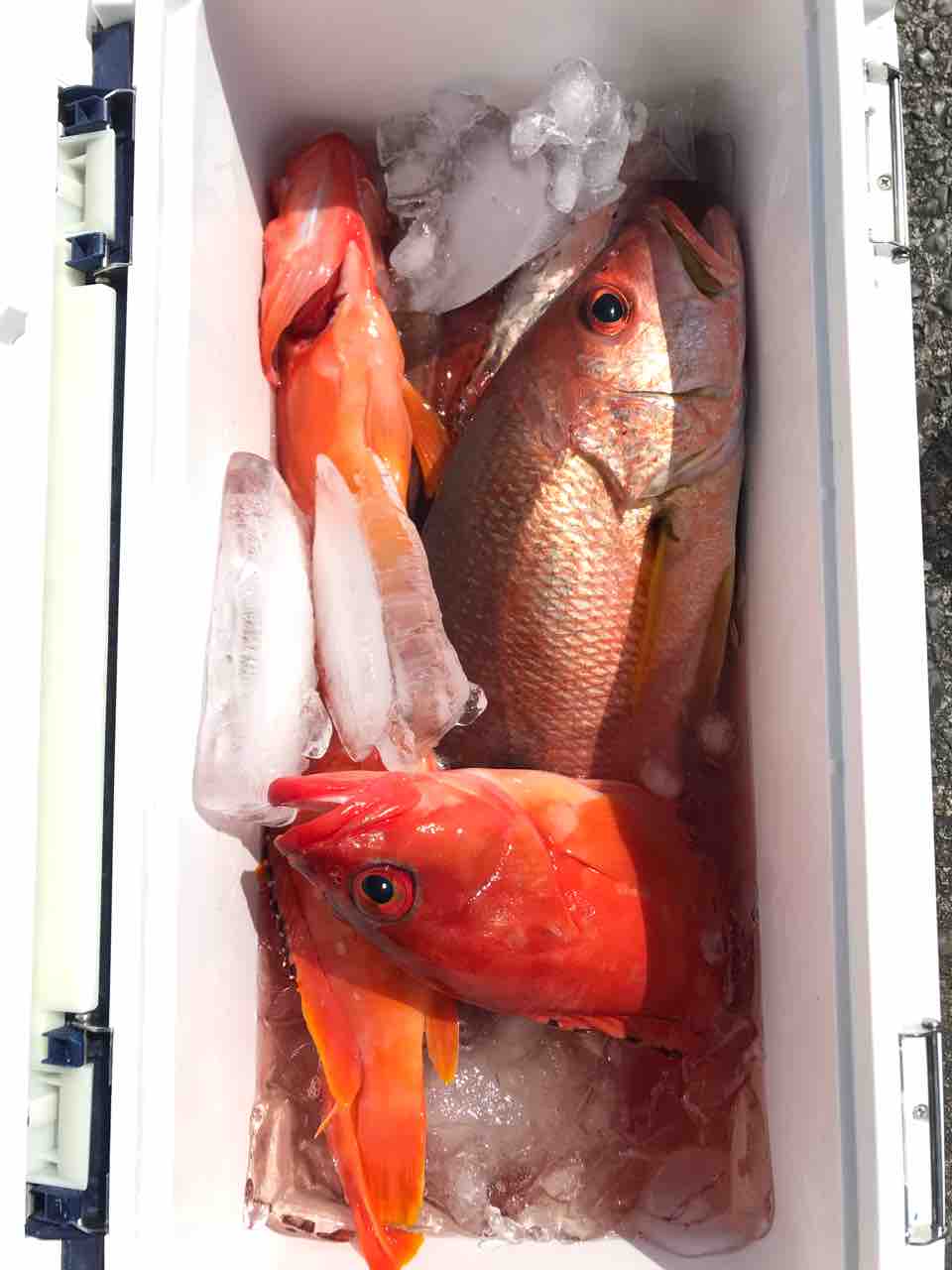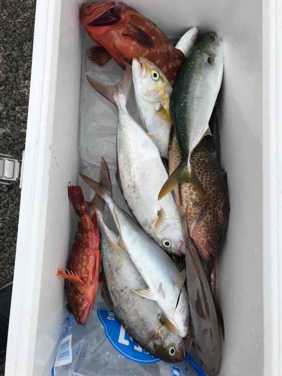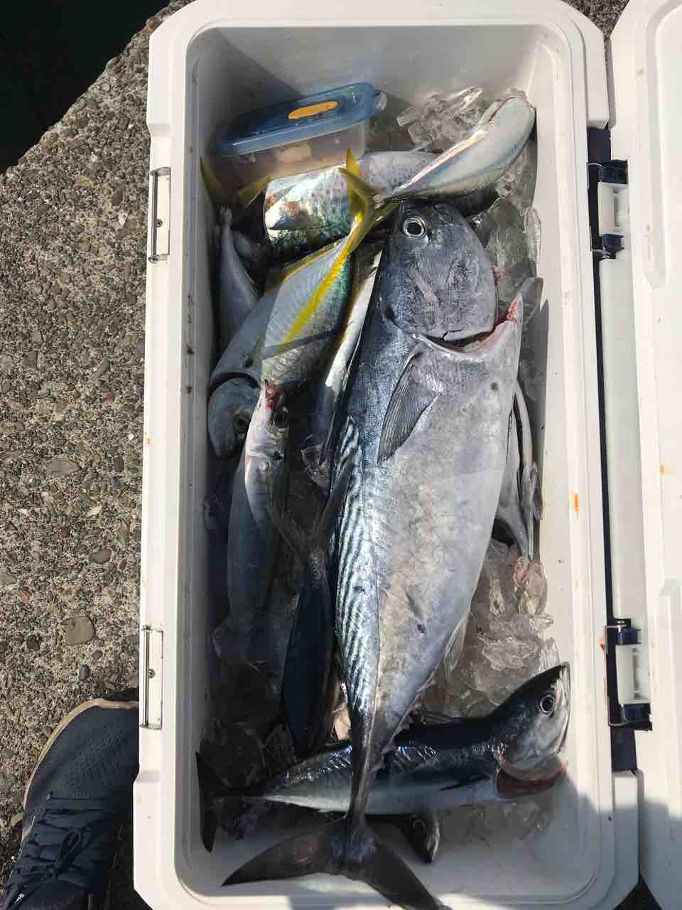 2021年09月27日 9月27日 今週から台風の影響がありそうです。昨日、一昨日と潮が悪く良い釣果では無いですが、24日金曜日は良型のヤイトカツオ釣れてましたよ^_^また良型のオオモンハタ、アカボなど底系も良いのが釣れてました。台風過ぎにまた期待したいです^_^釣果写真
