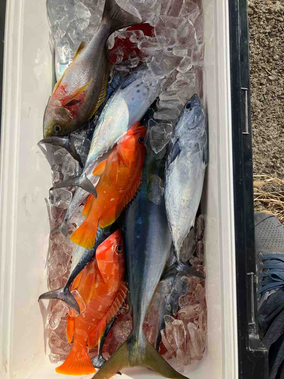 今日もモンズマ、アカチビキ、ジギングではヒレナガカンパチ(3キロ級)これも良型のハガツオが釣れてました^_^